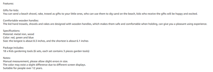 • Value Sets: you can get 6 sets of gardening tools for kids, each set contains 1 trowel, 1 rake and 1 shovel in different colors, totally 18 pieces of gardening tools, enough in amount and thoughtful in combination to meet kids' gardening, playing, digging needs