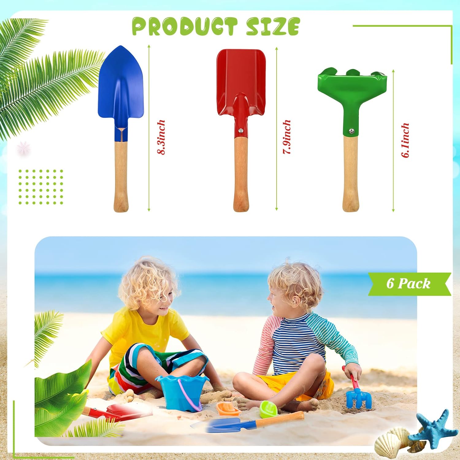 18 Pcs Kids Gardening Tools Set, Metal Kids Yard Tools with Sturdy Wooden Handle Safe Children Beach Sandbox Toy Sand Play Tools for Flower Soil Planting Loosening Digging, Trowel, Rake, Shovel