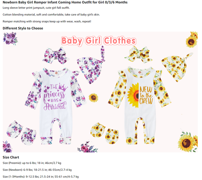OBTAIN:You will get 1 x Romper + 1 x Headband + 1 x Gloves + 1 x Hat. Pls hand wash cold, line dry, Do not bleach, iron, or tumble dry.