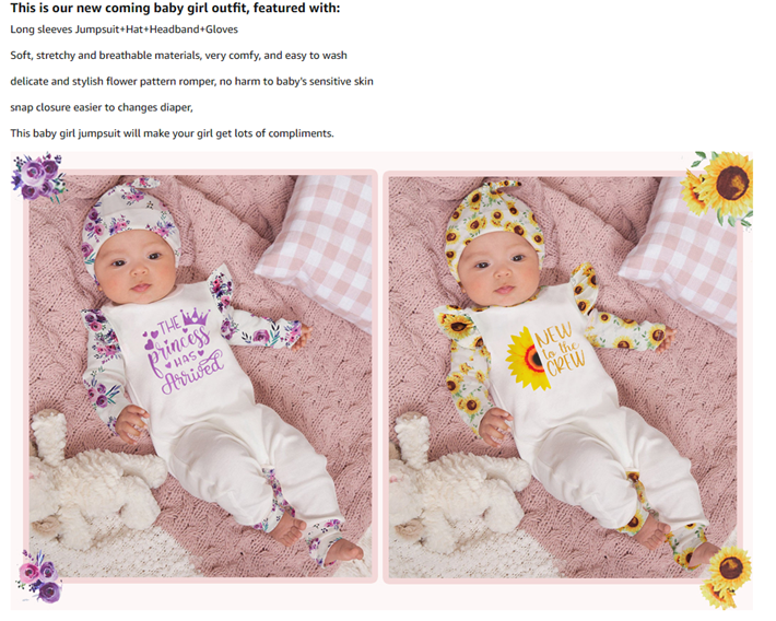 Brand New baby newborn girls princess jumpsuit and 1 pairs of scratch-prevention mittens, Matching lovely baby bow headband and hat tcomfortably fit round your little darling's head, make your little girl more attractive and cute,quality is the first thing we can make sure.