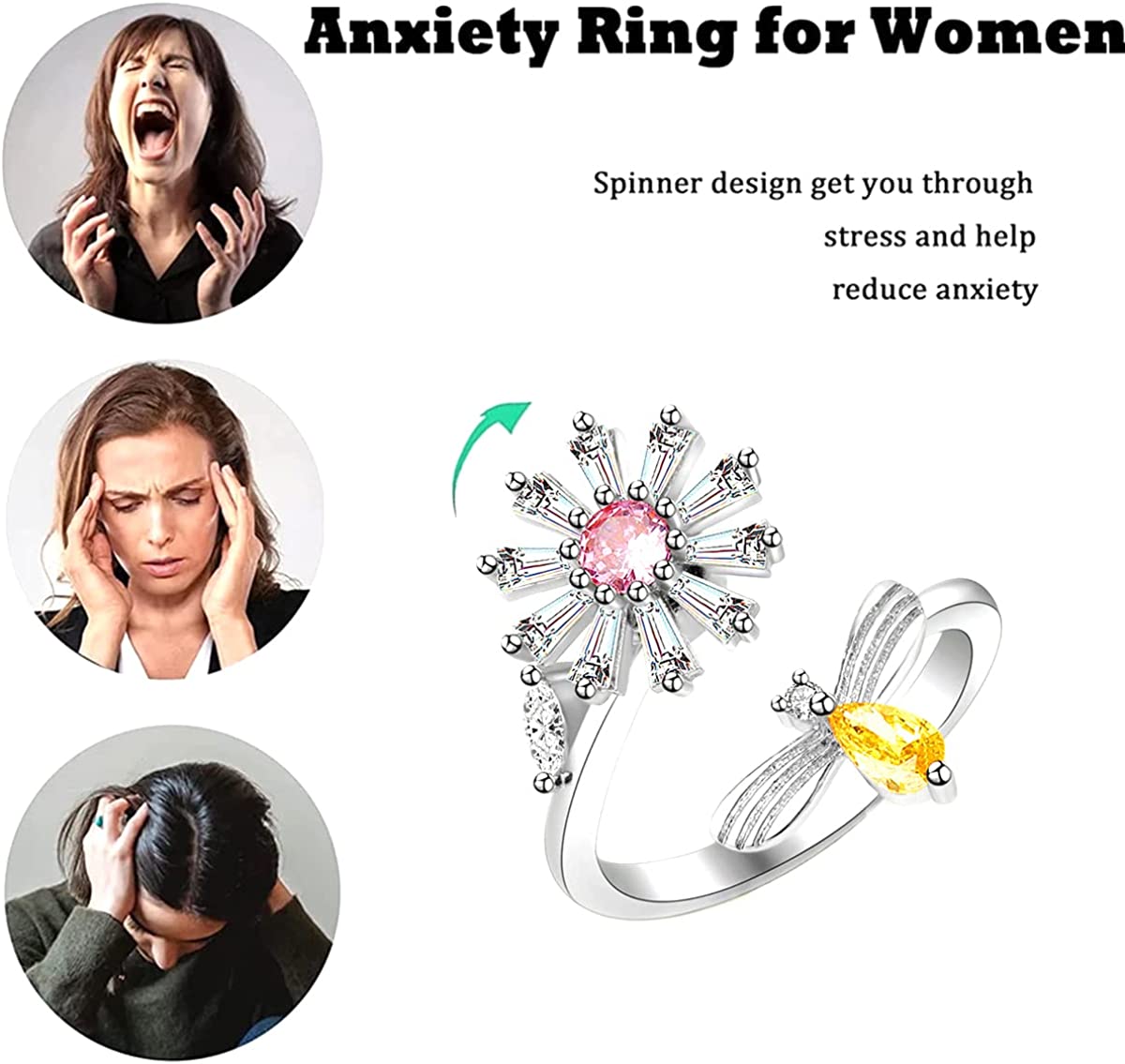 【Adjustable Open Ring】:These anxiety rings can easily adjust to fit the finger of different sizes, they are suitable for most women and girls. The rotatable design helps you divert attention and relieve boredom, relieve stress, and reduce anxiety while studying or working.