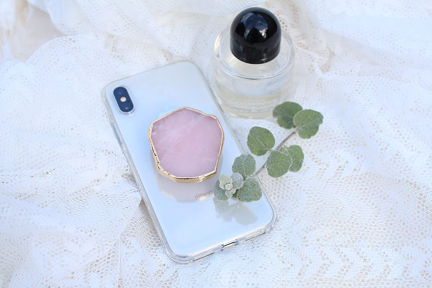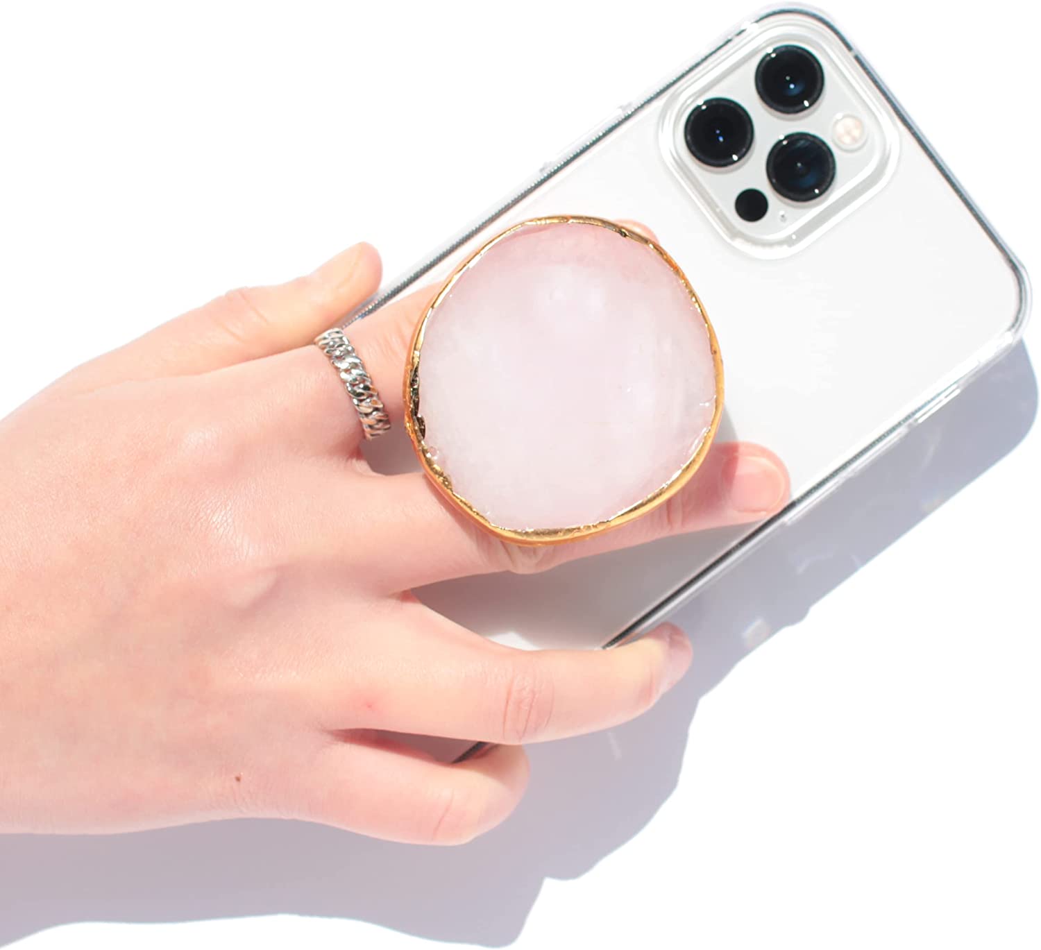 DALSTONE Authentic Natural Gemstone Collapsible Expandable Multi Functional Mobile Phone Grip Stand Holder for Smartphone Tablet Cell Phone Accessory (Rose Quartz Round)