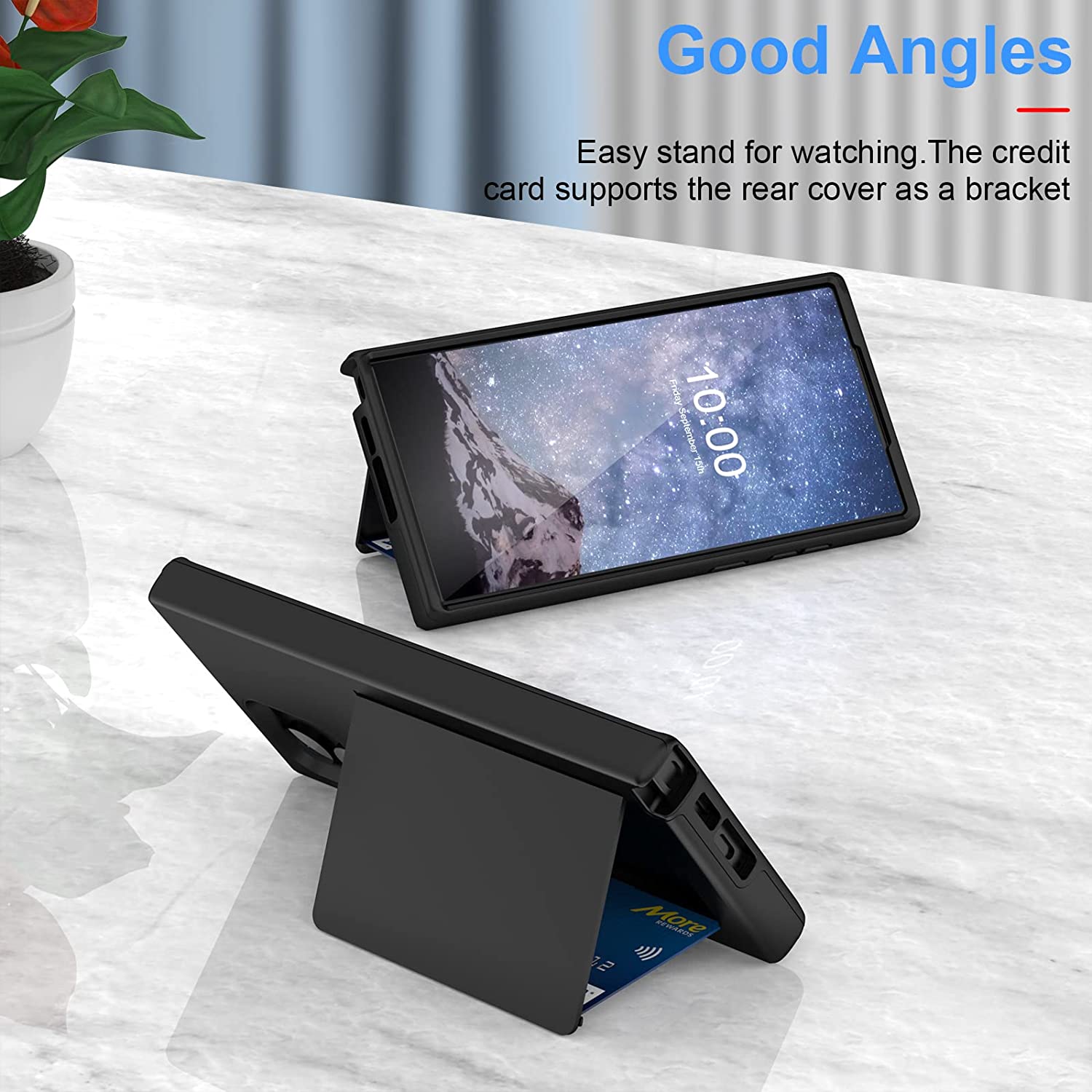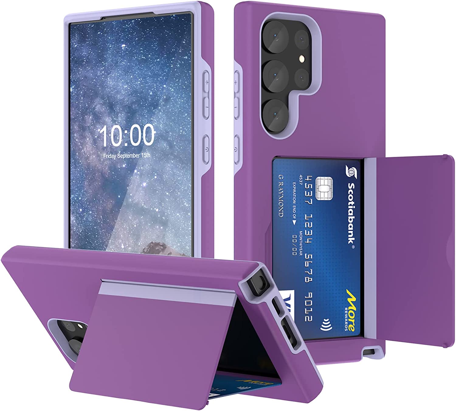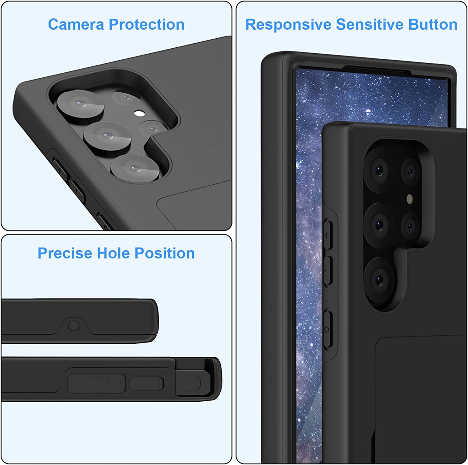【Sliding Card Slot】Hidden Card Wallet is on the back of Samsung S23 Ultra case, which can store 2 cards securely, put in your credit card, debit card, ID, driver's license, or cash, very portable.You needn't bring an extra card bag if you have this phone case.