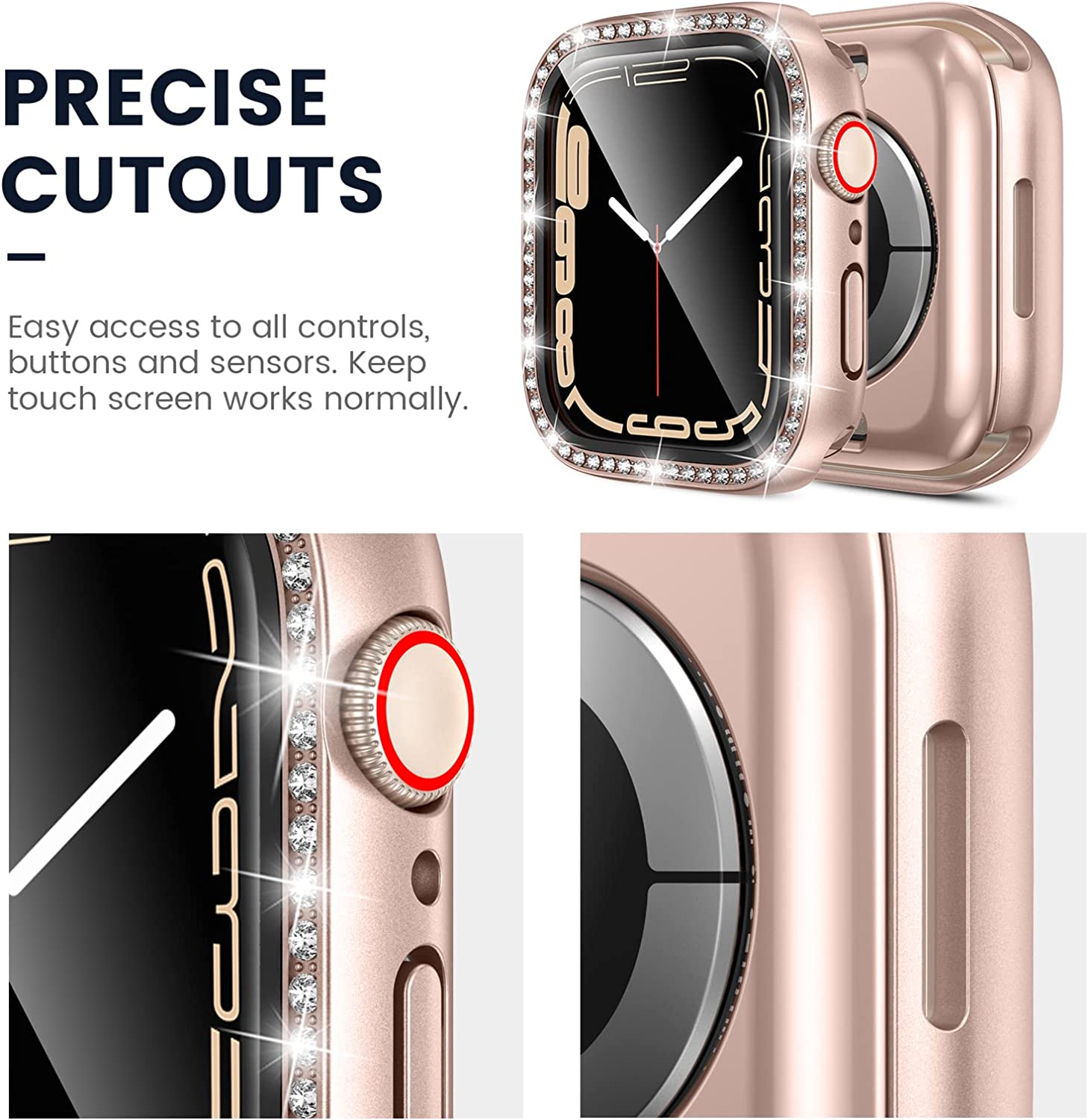 [COMPATIBILITY] Designed for Apple Watch Series 8 41mm & Apple Watch 7 41mm, please choose the suitable model by you need. Bling diamonds cover with screen protector, protect and stylish your Apple Watch! NOTE: Not fit for Apple Watch 8 45mm & Apple Watch 7 45mm (Choose the other size variation), Apple Watch SE 2022 Series 6/ 5/ 4 40mm or 44mm, Series 3/2/1 38mm or 42mm.