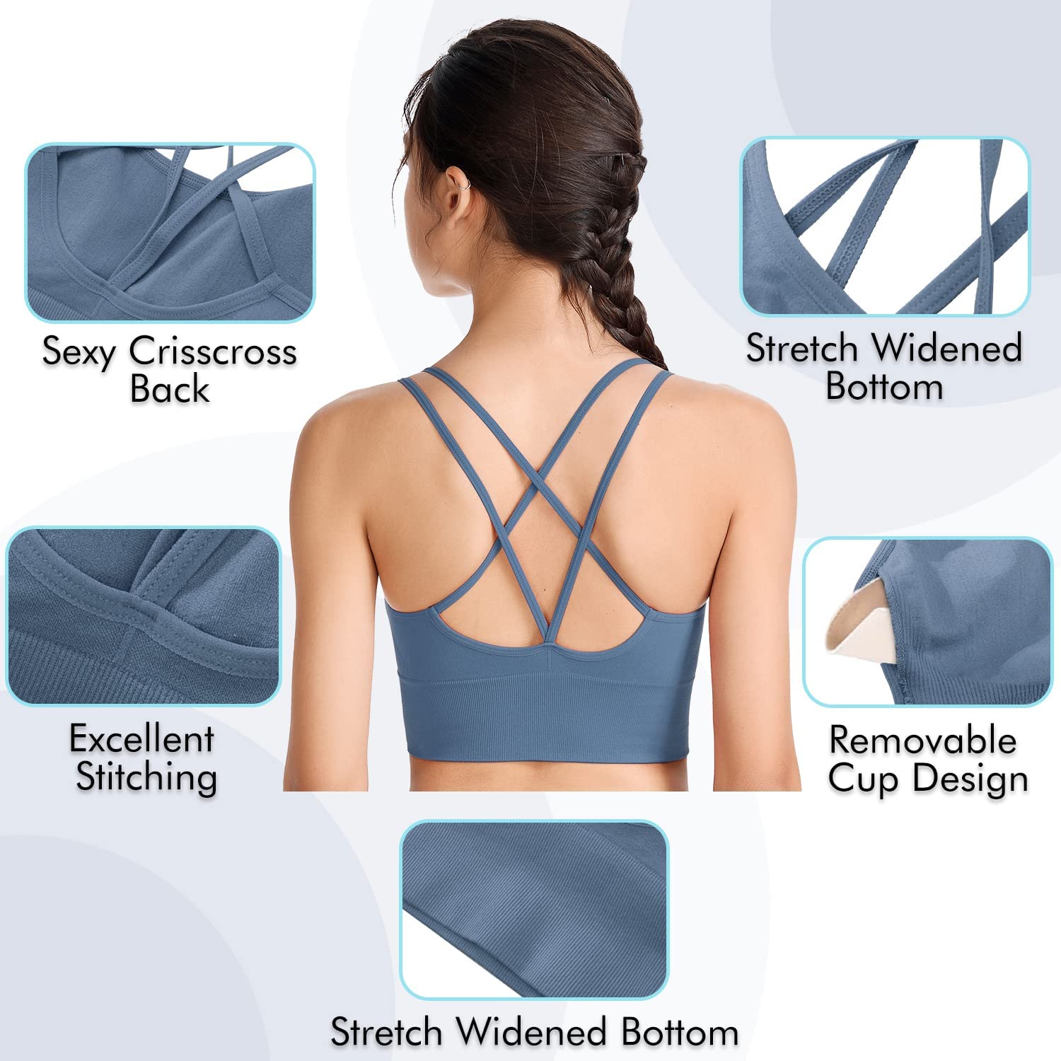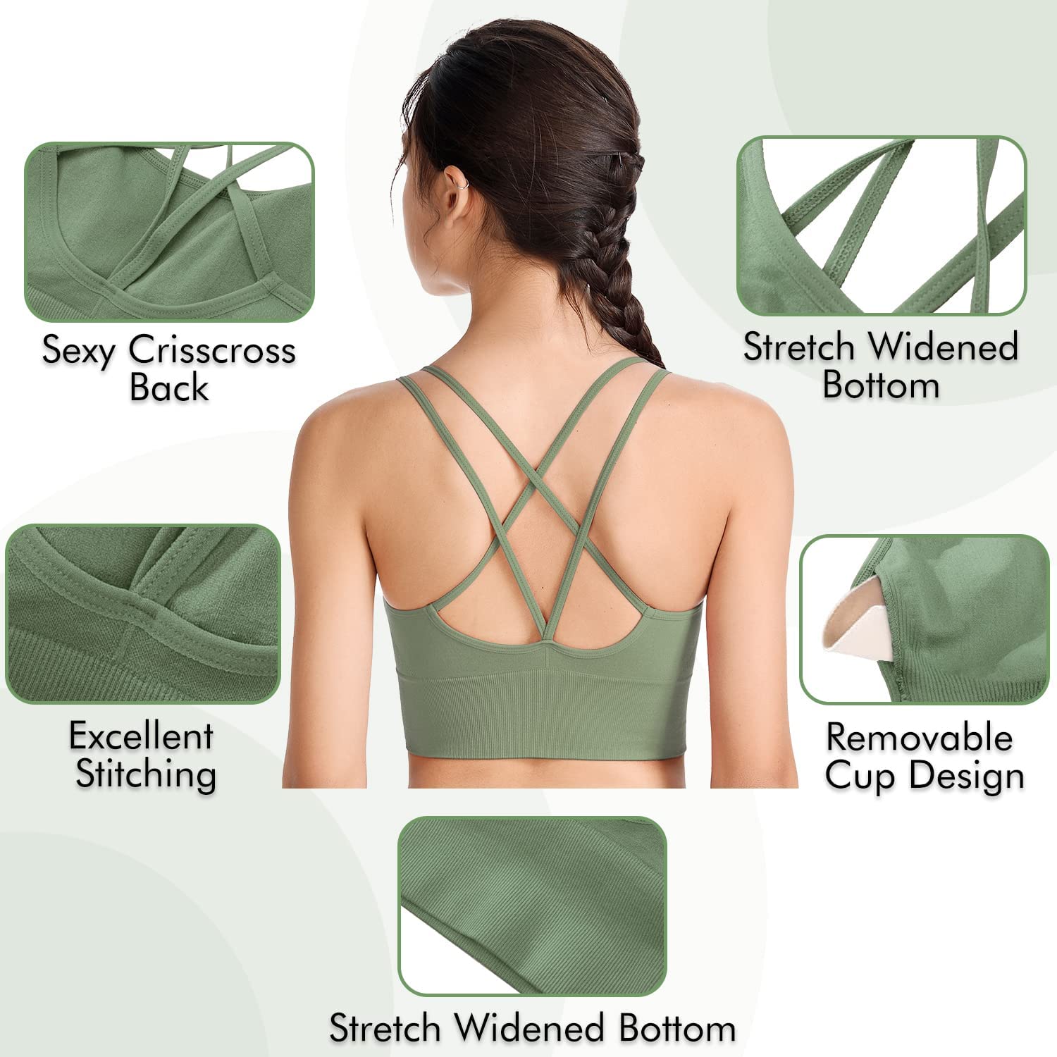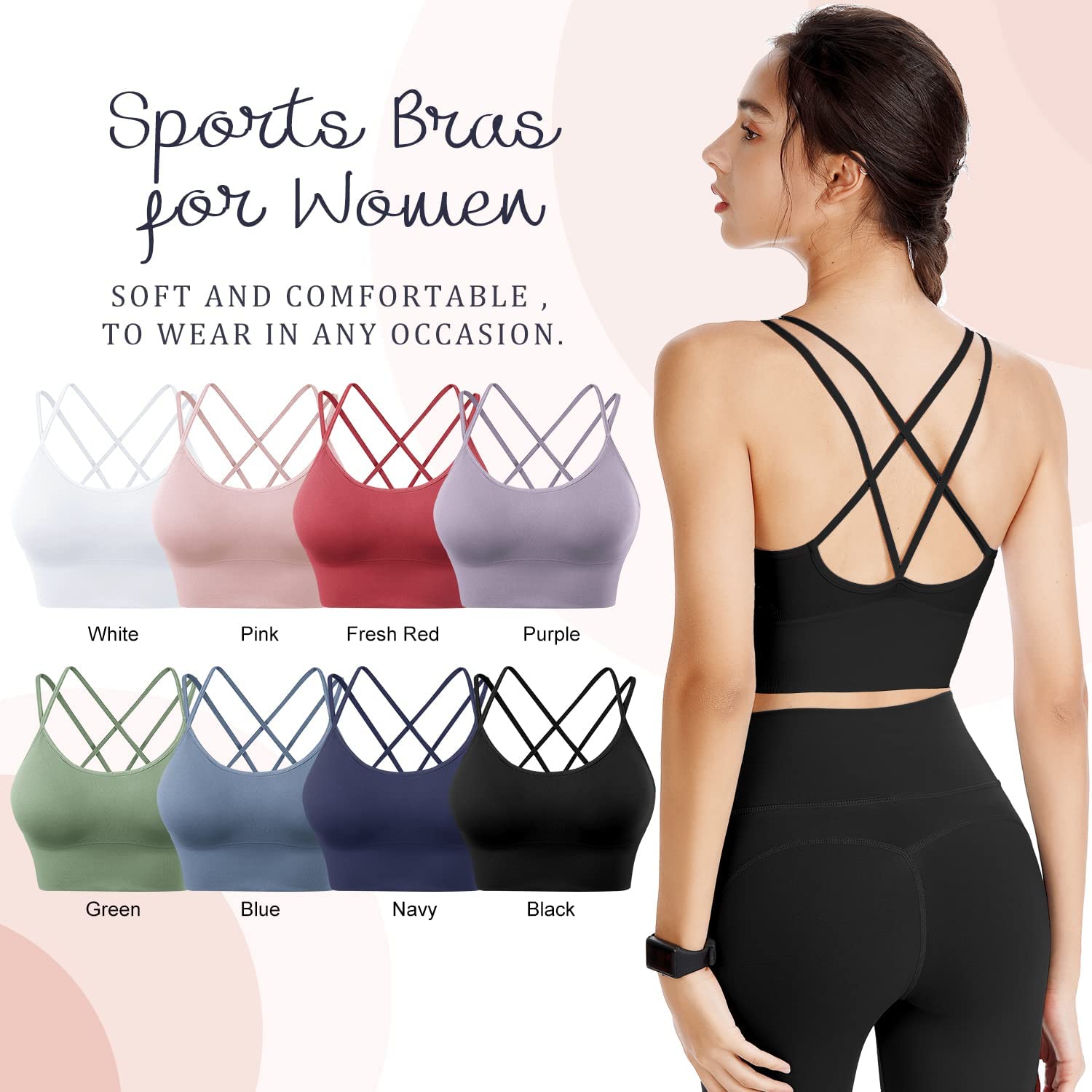 Sports Bras for Women Padded Strappy Criss Cross Cropped Bras for Yoga Workout Fitness Running Gym Low Impact Top