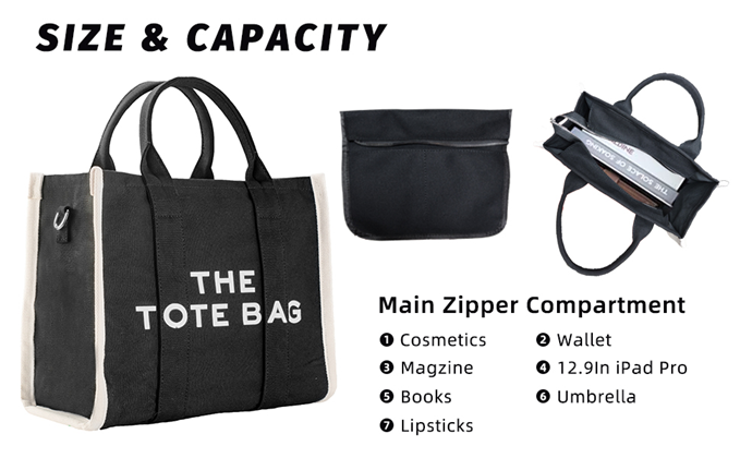 - 【Material】- The tote bag for women is made of superior encrypted canvas, sturdy and wear-resistant. Styled with bold block lettering, fashionable and popular. It is not only used for storing your items but also showing your personality.