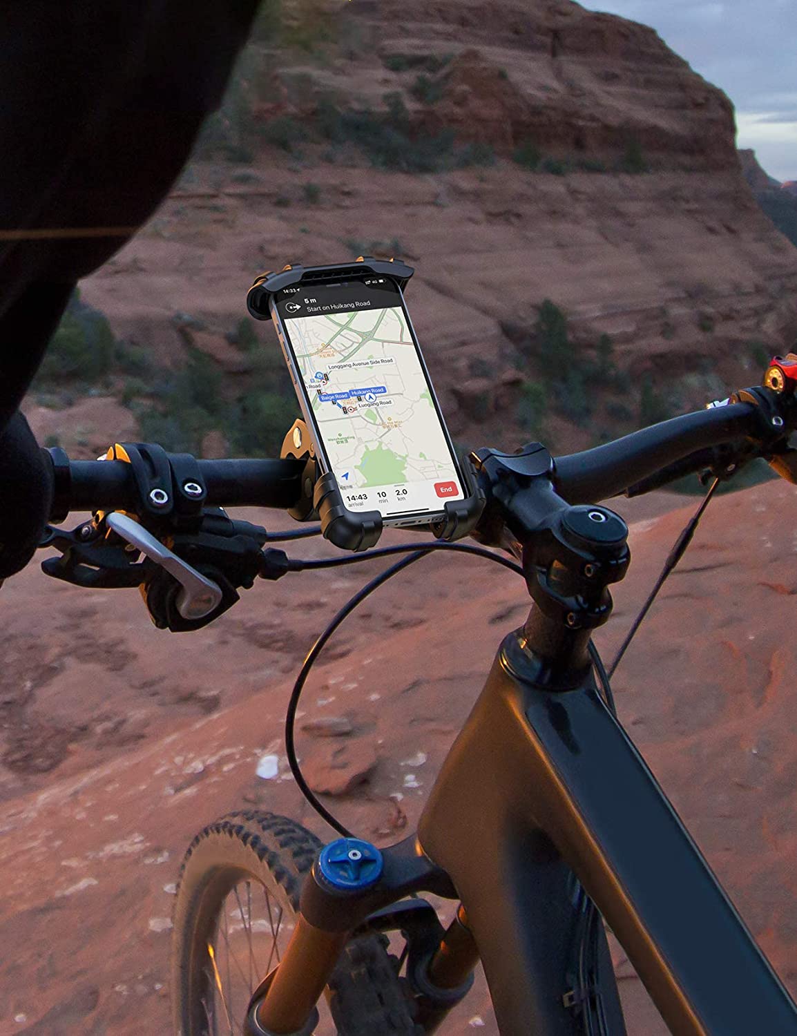 The portable stand of this bike is equipped with silicone mat to prevent damage and vibration of the phone. When riding a bicycle, the motorcycle's mobile stand can perfectly fix the cell phone