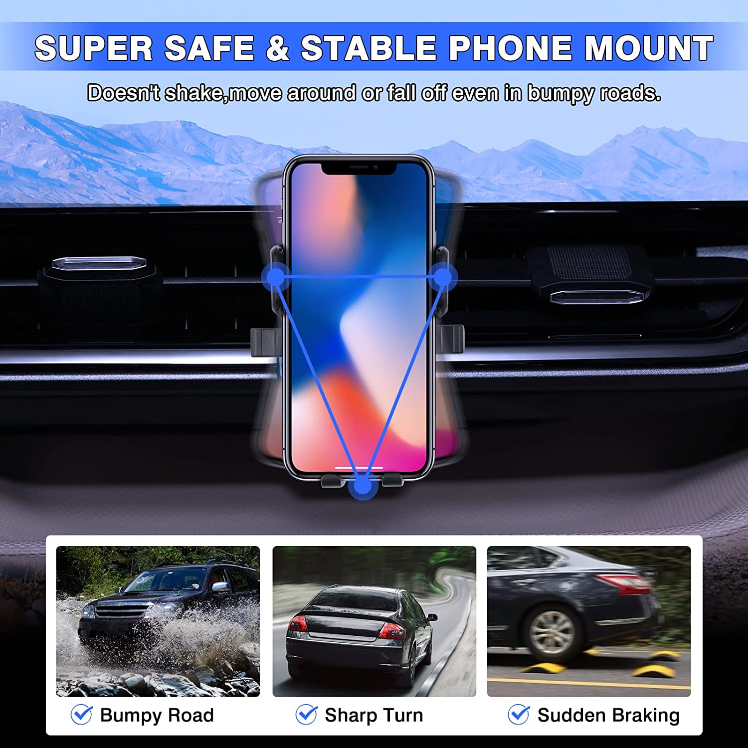 • 【Fairly Easy to Install】Align, press and snap the phone holder base to the air vent and put the mobile phone holder to the bracket. Please loosen the nut a little when you want to adjust the angle. High quality ABS material with soft rubber pad inside the clamps and bottom foot, safe, sturdy and durable, won’t fall out once installed.
