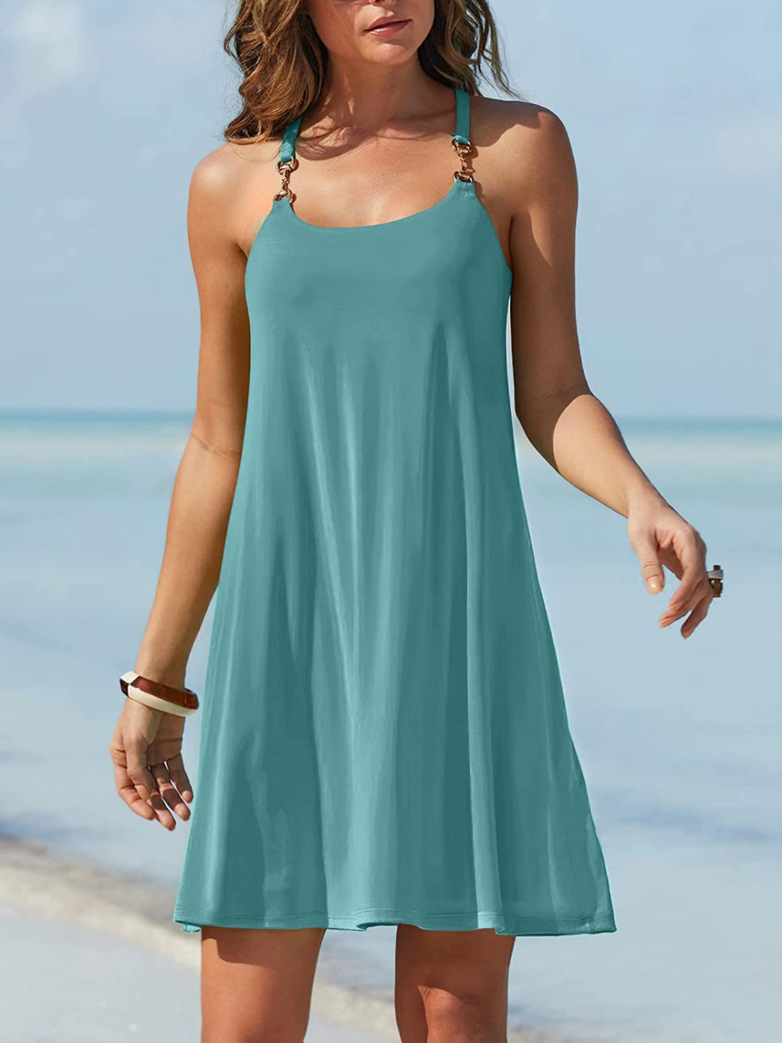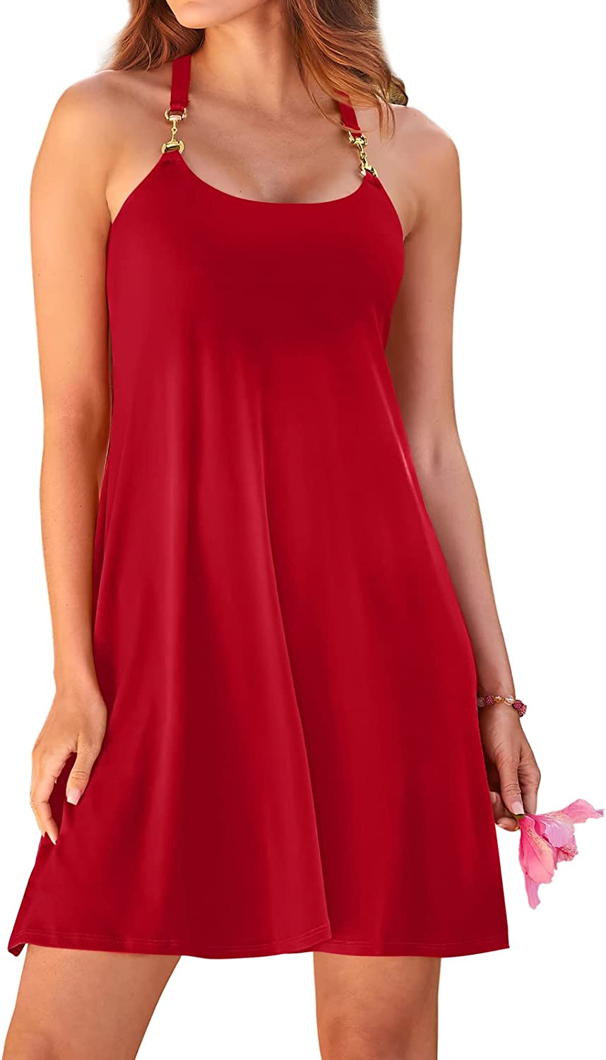 • Features - This swimming beach cover up featured a scoop neck,spaghetti strap,tank swing dress,tunic dress,mini T-shirt dress,casual loose summer beach dress.