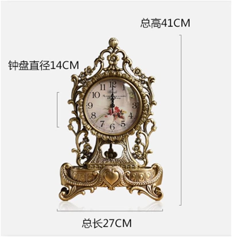 ZSEDP Copper Silent Table Clock European Antique Clocks Living Room Creative Clock Retro Table Clock All Copper Seat Clock