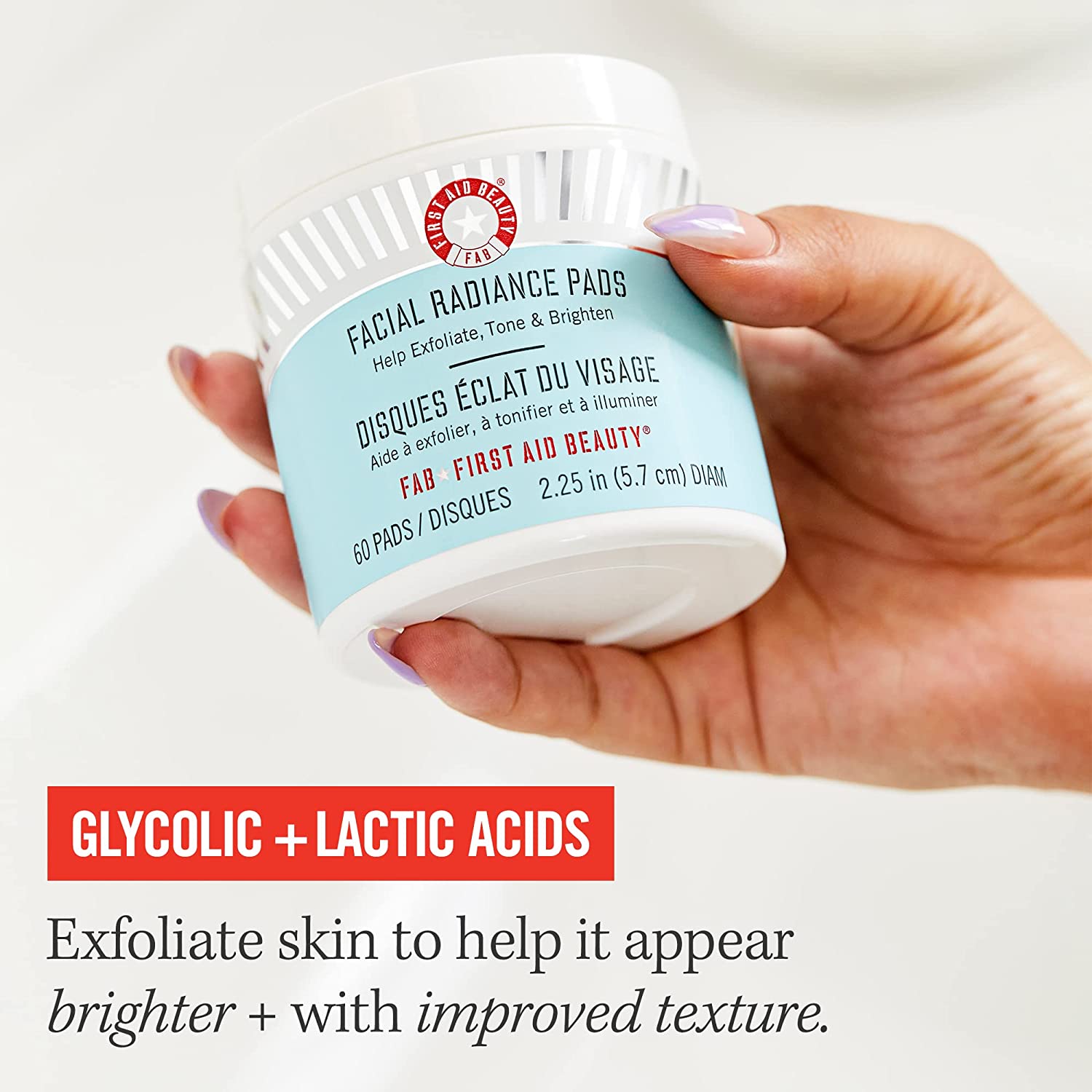 First Aid Beauty Facial Radiance Pads – Daily Exfoliating Pads with AHA that Help Tone & Brighten Skin – 60 Count