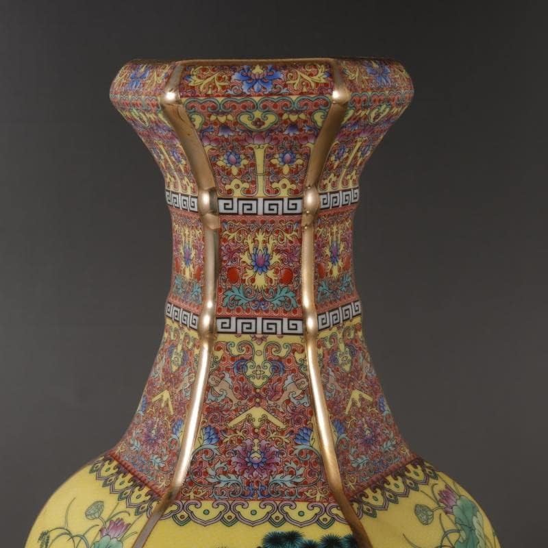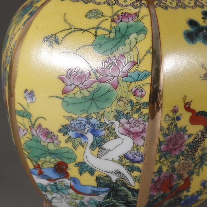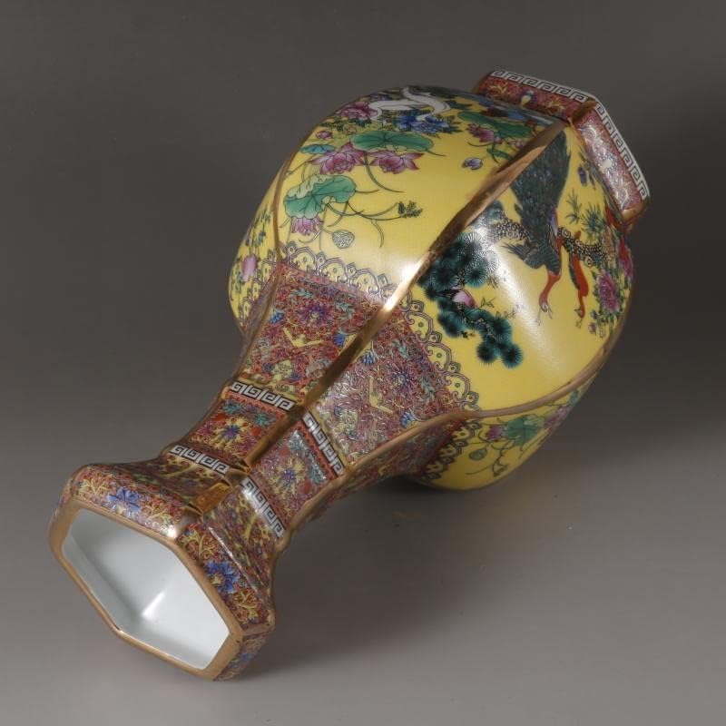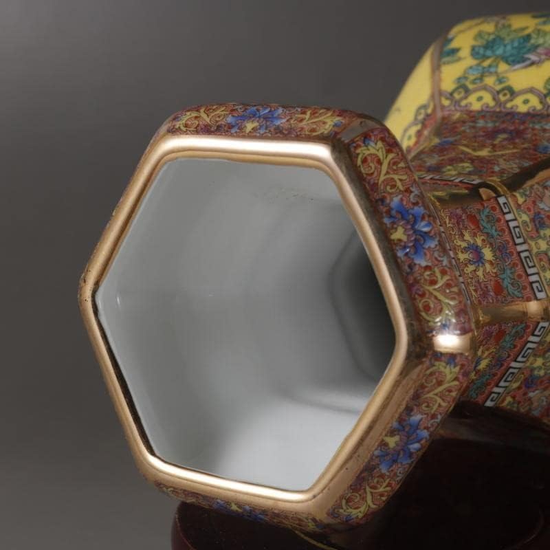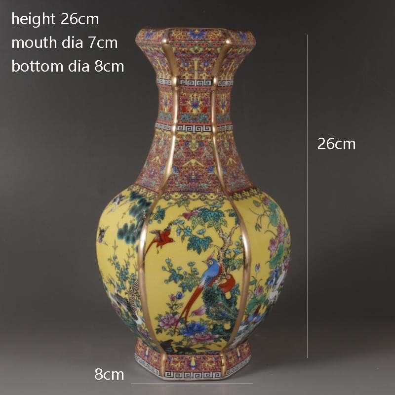 ZSEDP Enamel Hexagon Vase Gold Flowers and Birds Chinese Style Classical Home Furnishing Vase Antique Ornaments