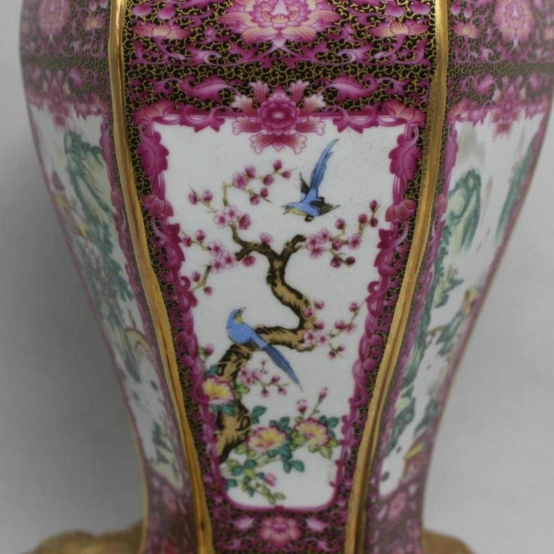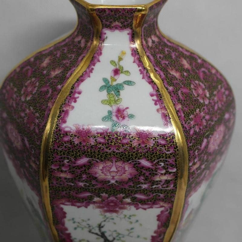 ZHYH Jingdezhen Antique Enamel Square Vases Flowers and Birds Pattern Ancient Porcelain