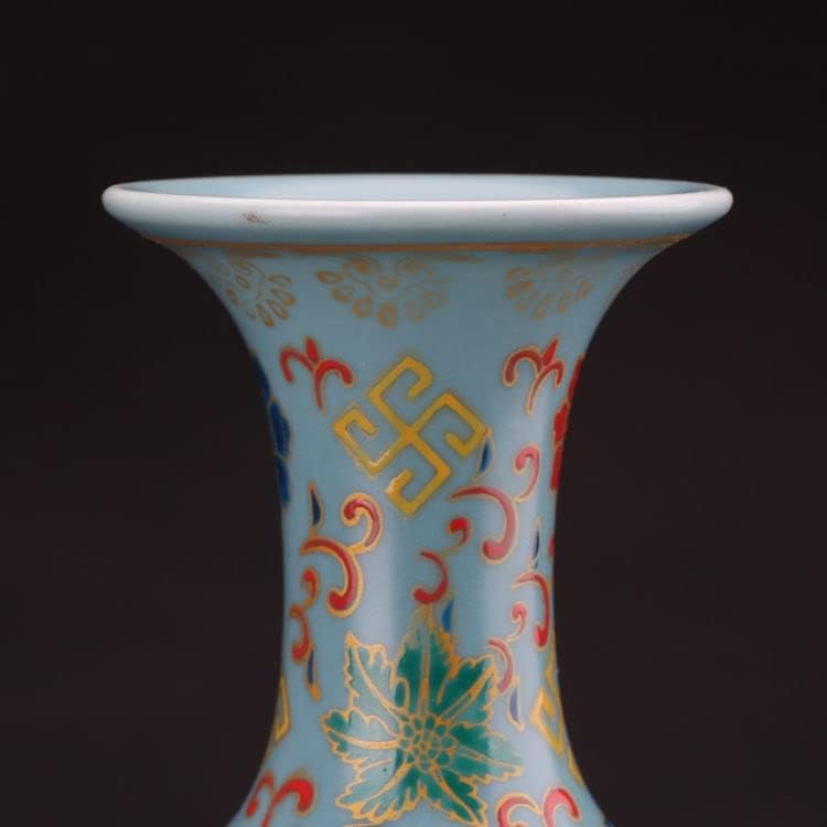 ZSEDP Blue Glaze Enamel Precious Phase Pattern Fishtail Vase Ceramic Decoration Antique Flower Vase
