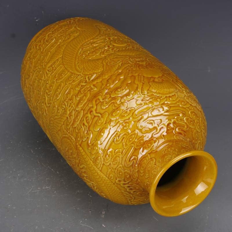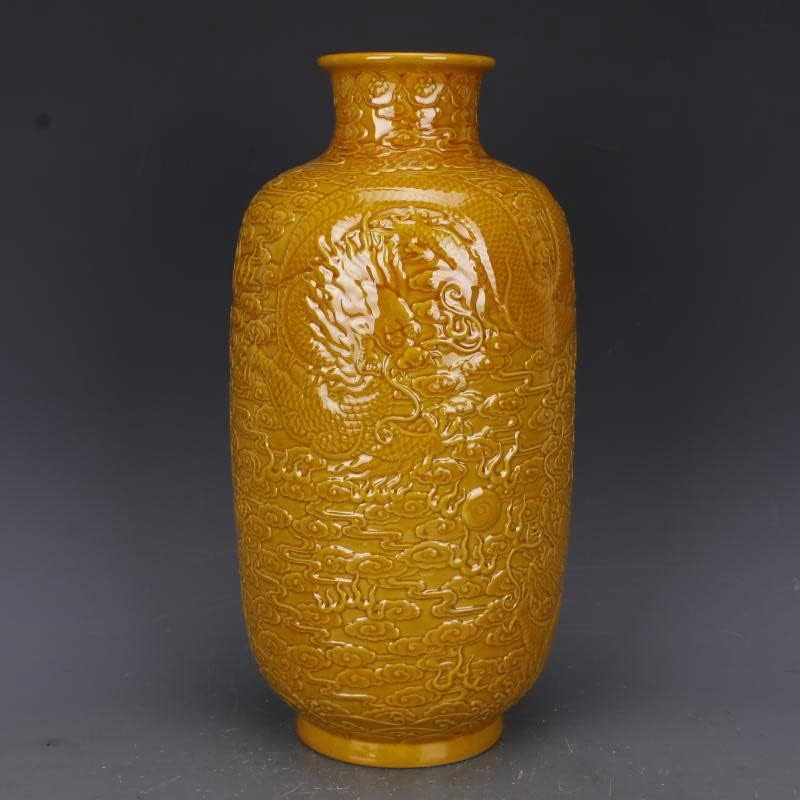 ZSEDP Antique Yellow Glaze Embossed Home Decoration Porcelain Flower Vase Collection Vase
