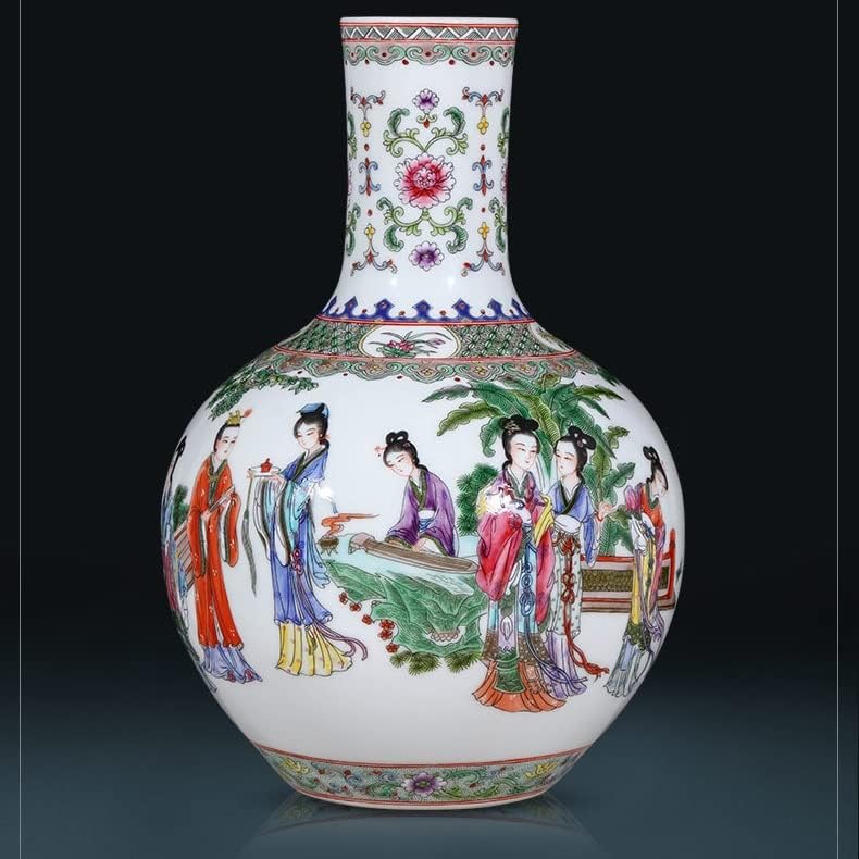 ZSEDP Jingdezhen Porcelain Hand Painted Figure Vase Flower Arrangement Antique Chinese Living Room Home Decoration