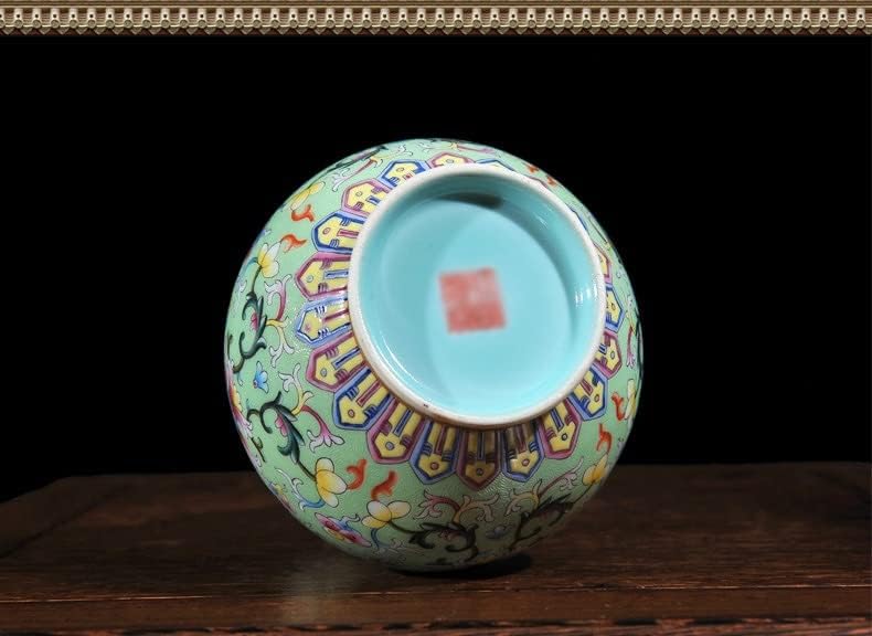ZSEDP Chinese Style Antique Green Ceramic Flower Vase Collection Jingdezhen Porcelain Gourd Decoration Vase