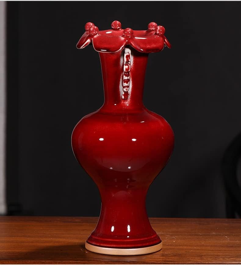 ZSEDP Ceramics Jun Porcelain Antique Vases Furnishings Decorative Arts and Crafts Double Ears Leaf Mouth Vases