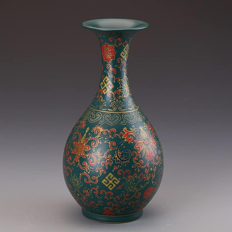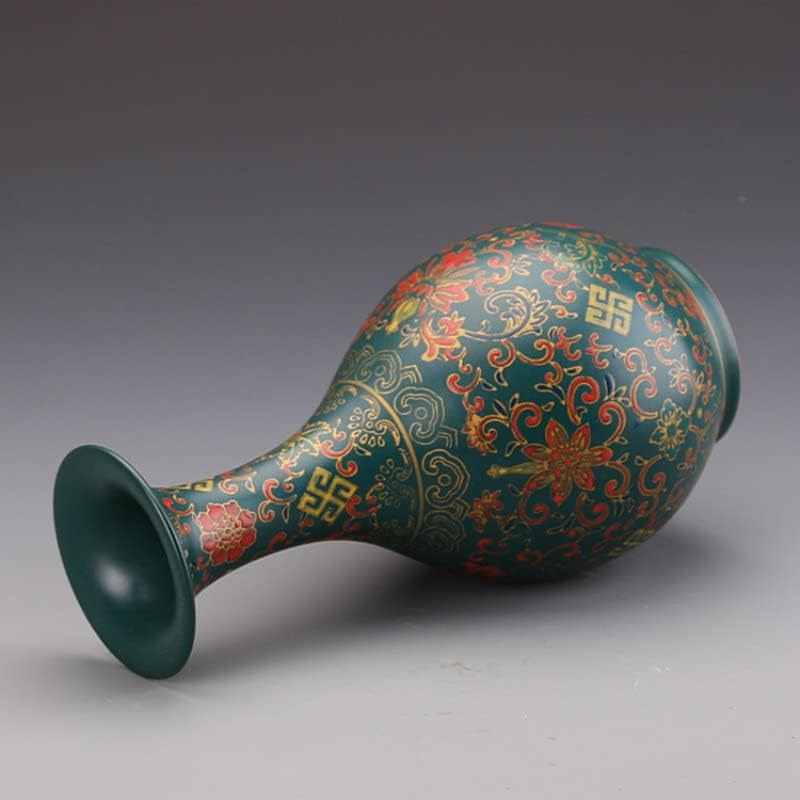 ZSEDP Classic Antique Chinese Style Porcelain Green Glaze Enamel Jingdezhen Flower Vase for Collections