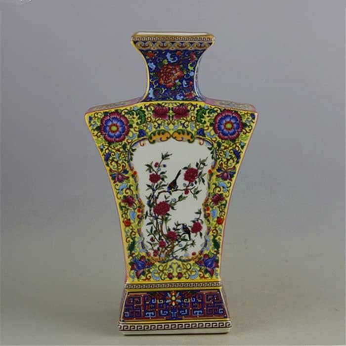 ZHYH Jingdezhen Antique Enamel Square Vases Flowers and Birds Pattern Ancient Porcelain