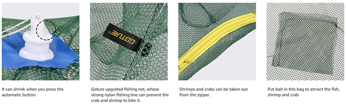 - Fishing net trap with 360°& Double-decker design, great for catching smelt, crab, lobster, minnows, shrimp and crawfish.