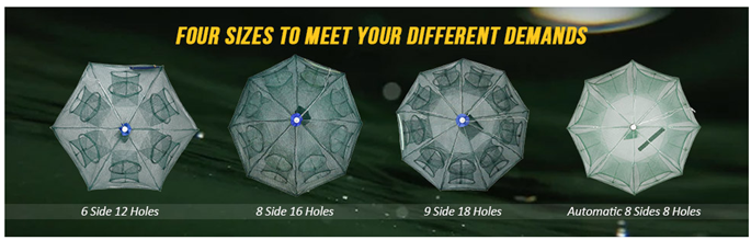 - Portable 9 sides 18 Holes automatic telescopic fishing shrimp trap, convenient and simple, no need to install, easy to use. Just pull the string on the top and the net will be automatically opened