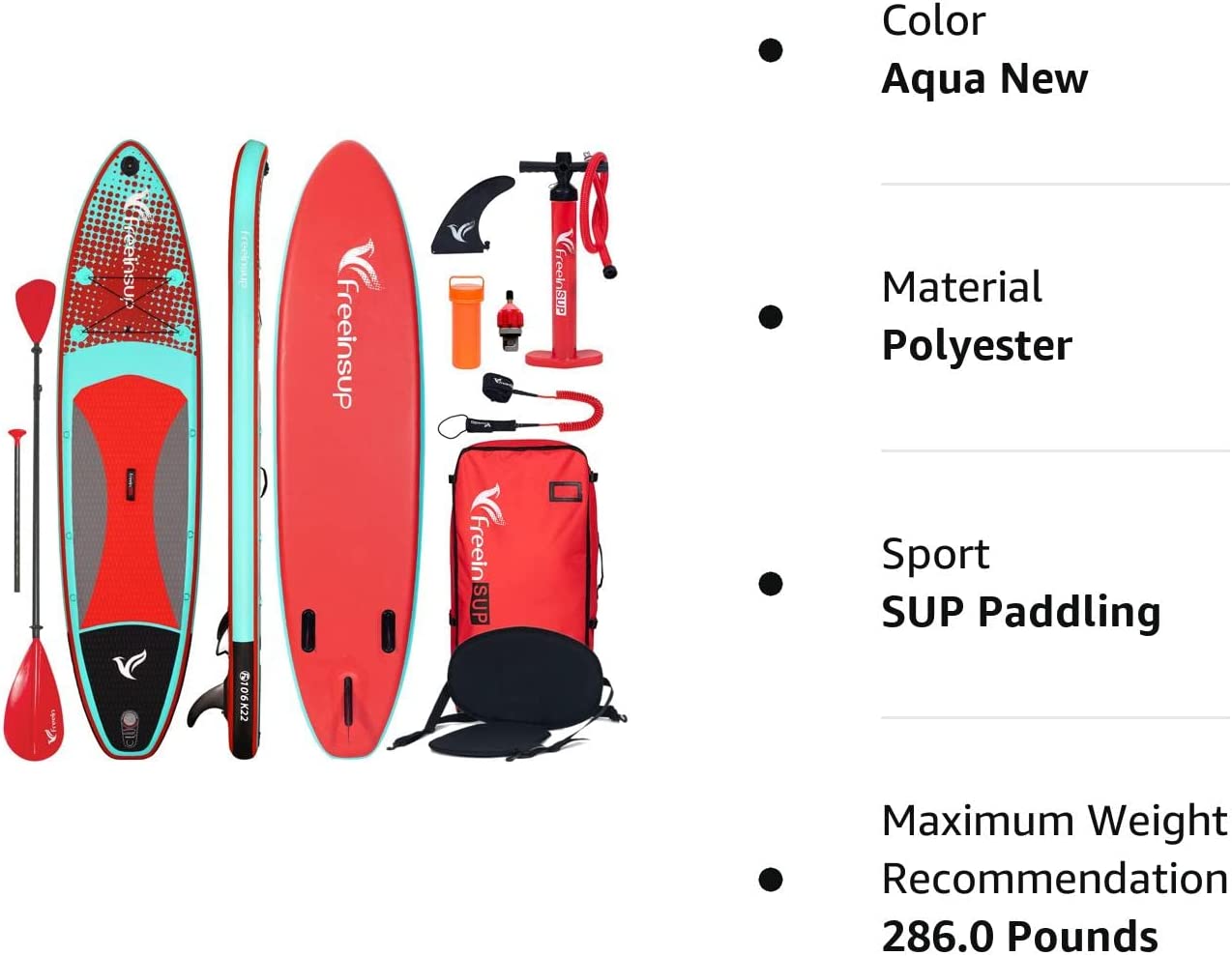 Freein Kayak SUP Inflatable Stand up Paddle Board ISUP 10'/10'6”/11', Pump Adaptor,Dual Action Pump, 2 Blades Paddle,Triple Fins, Leash, Backpack