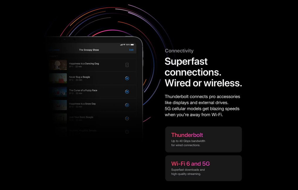 Brilliant 12.9-inch Liquid Retina XDR display with ProMotion, True Tone, and P3 wide color