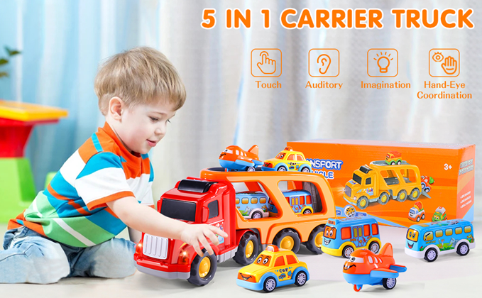 Every little boy who loves cars dreams of owning countless cars, this 5-in-1 truck in trucks is perfect for 2 3 4 5 6 year old car lovers.