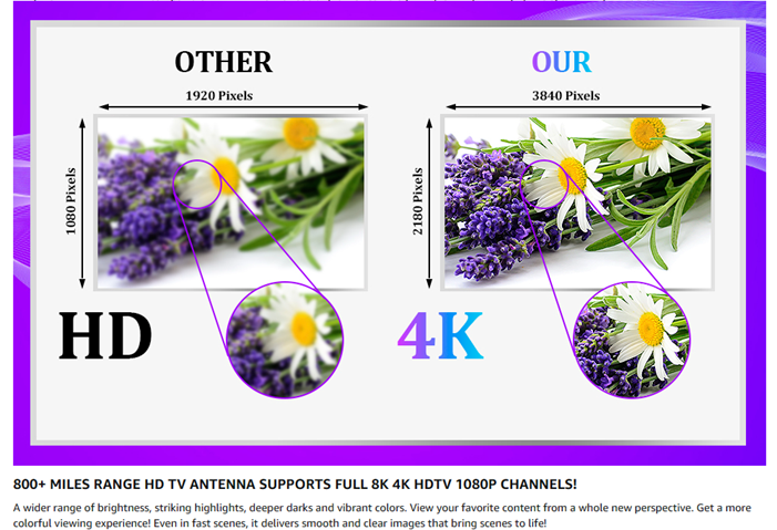 • ?▷【UPGRADED TO 800+ MILE LONG RANGE】- TV antenna for smart tv, equip with 2023 MOST POWERFUL built-in ic chip & HIGH-QUALITY signal amplifier, ensure the stability of signal reception,access to more free channels . Indoor/Outdoor tv antenna has high gain, bring clear pictures, low noise and access to most TV signals.Transfer 8k 4k combination of UHR and HDR video content. You deserved the 2023 Best & Oversized ANTENNA which offers more longer ranges on the market and lndustry-leading Power!
