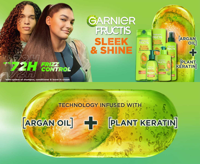 • Garnier Sleek and Shine Leave In Conditioner: Nourishing hair cream with argan oil penetrates into frizzy, dry hair to smooth each strand; Up to 3 days sleek and long lasting frizz control even in 97 percent humidity
