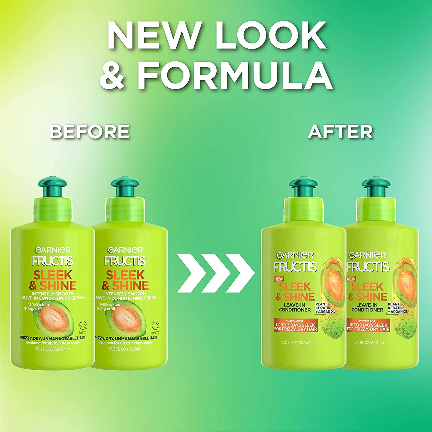 Garnier Fructis Sleek & Shine Leave-In Conditioning Cream for Frizzy, Dry Hair, Plant Keratin + Argan Oil, 10.2 Fl Oz, 2 Count (Packaging May Vary)