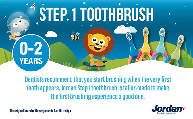 - TAILOR MADE - Step 1 toddler toothbrush step 1 toothbrush is tailor-made to make the first brushing experience a good one. The short neck and it`s unique teeth ring prevent to swallow or prick when brushing
