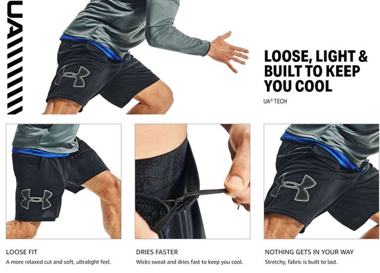 • UA Tech fabric is quick-drying, ultra-soft & has a more natural feel