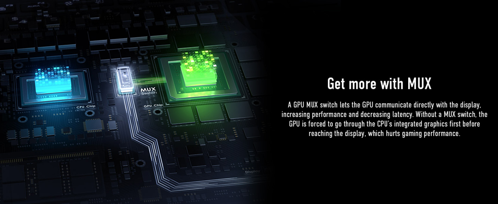 • MUX SWITCH BOOST - A MUX Switch lets the GPU communicate directly with the display, increasing performance and decreasing latency