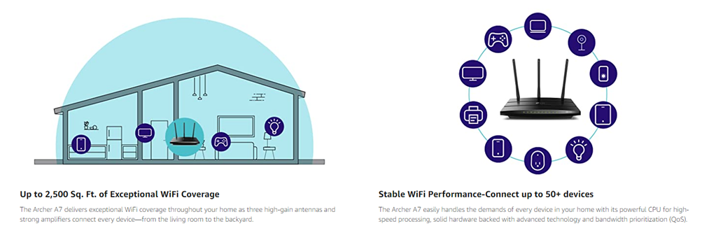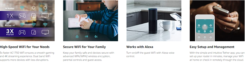 AC1750 Wi-Fi router/wireless router. One of routers for wireless internet, wireless routers for home. Dual band router and gigabit router. Ideal as internet router also gaming router. Long range coverage with high speed. Compatible with all 802.11ac devices and below. 5ghz router/5g router Frequency Range: 2.4GHz and 5GHz; Interface Available: 4 x 10/100/1000Mbps LAN Ports, 1 10/100/1000Mbps WAN Port, 1 USB 2.0 Ports; Protocols Supported: Supports IPv4 and IPv6; System Requirement: Microsoft Windows 98SE NT 2000 XP Vista, or Windows 7 Windows 8/8.1/10, MAC OS NetWare UNIX or Linux; Wireless Standards: IEEE 802.11ac/n/a 5GHz, IEEE 802.11b/g/n 2.4GHz.