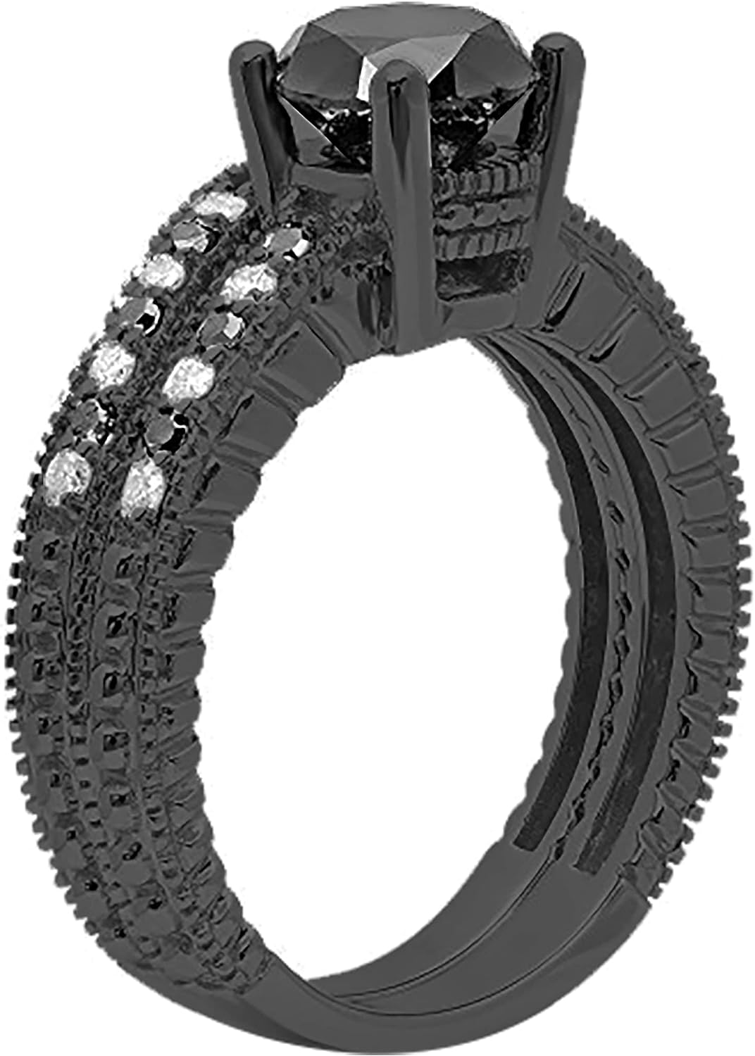 • ?【SPECIFICATIONS】 - Black Plated 10K White Gold ? Primary Diamond Color: Black | Clarity: Opaque | Creation: Natural | Treatment: Treated for color (Permanent) ? White Diamond Color: I-J | Clarity: I2-I3 | Creation: Natural | Treatment: Not-treated ? Primary Round Black Diamond(s) Weight: 1.45 Carat ? Round White Diamond(s) Weight: 0.30 Carat ? Total Diamond Weight: 1.75 Carat ? Product Width: 6.4mm (0.25 inch) ? Model Number: K2849-10KW-BP-4