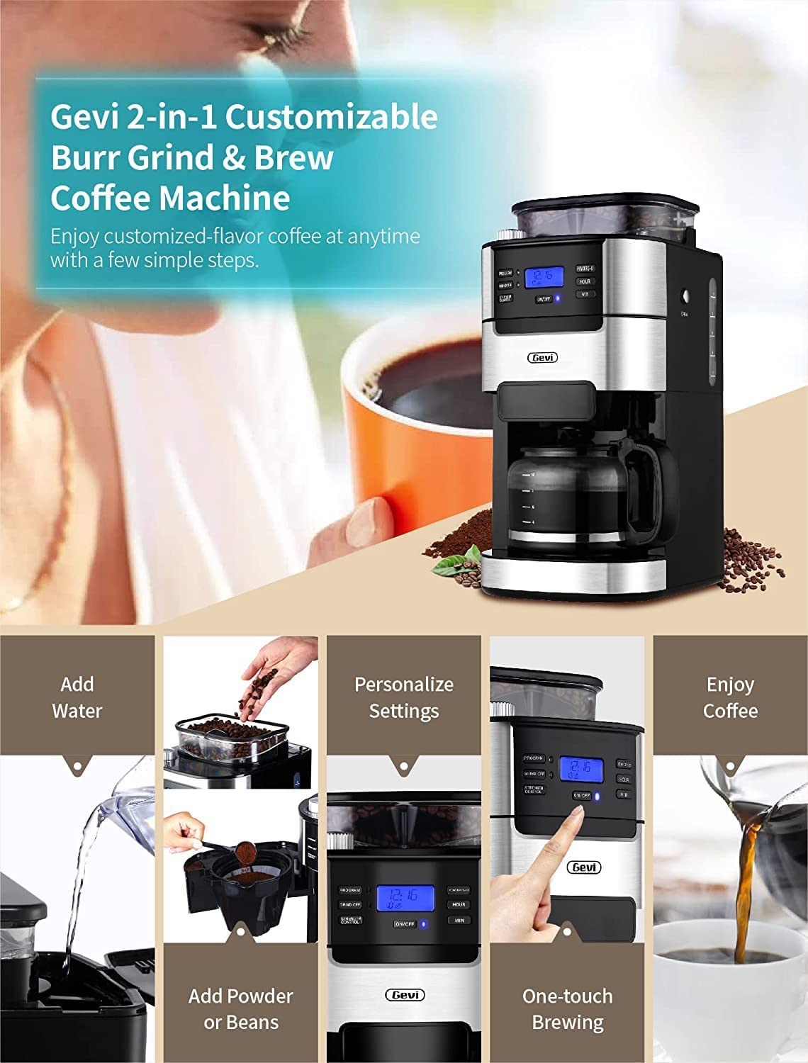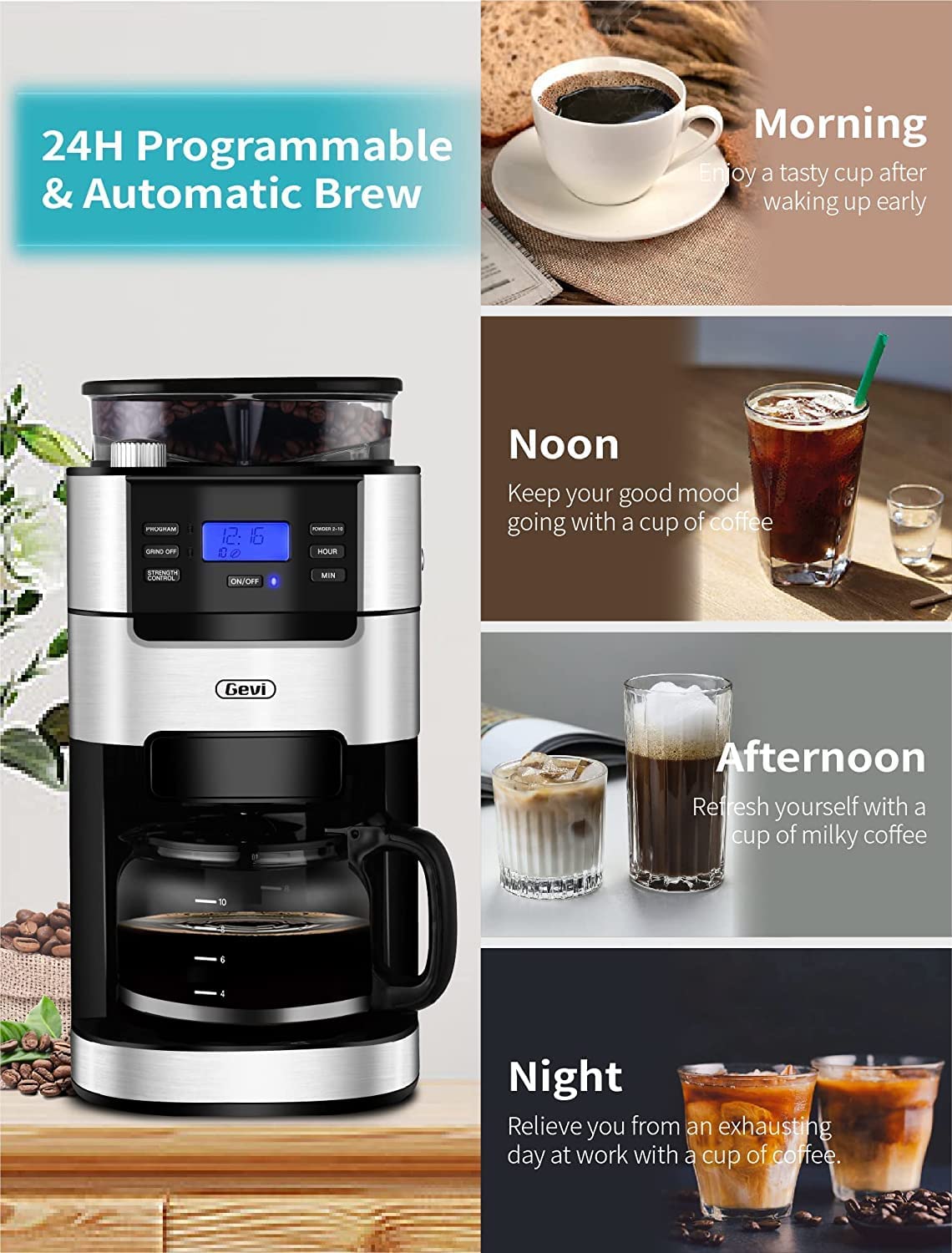 | Included Components | ☕1 * Gevi Grind and Brew Automatic 10-Cup Drip Coffee Maker ☕1 * Glass Coffee Pot ☕1 * Scoop ☕1 * Permanent Filter ☕1 * Manual |