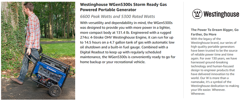 | Model Name | WGen5300s Portable Generator with Electric Start and 120/240 Volt Selector |