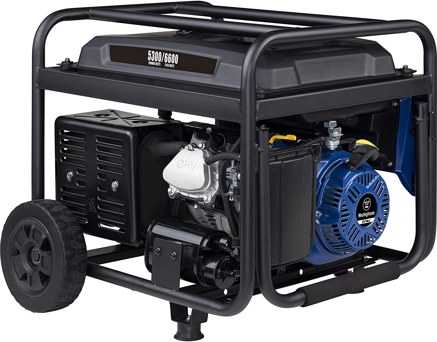 The Westinghouse WGen5300s is a versatile solution for all your power needs from your home to your RV when you’re looking for a dependable backup power supply. The WGen5300s produces 6,600 peak watts and 5,300 running watts with a powerful 274cc 4-Stroke OHV Westinghouse Engine constructed for durability. Running for up to 14.5 hours on a 4.7 gal. (18L) tank of gas, it's conveniently equipped with a built-in fuel gauge, automatic low oil shutdown, and electric start with manual choke. The L14-30R outlet is Transfer Switch Ready to supply total household power which eliminates the hassle of annoying extension cords or power strips. Combined with an RV Ready TT-30R outlet, you can ensure your recreation vehicle or home is ready to go for air conditioners, refrigerators, sump pumps, and home necessities. The intuitive control panel includes the Digital Readout to share real-time updates on maintenance information and a 120/240 Volt Selector Switch to draw more power with added flexibility for appliances like a well pump. Engineered into a compact hardened-steel frame with never-flat wheels, it's easy to bring this generator from storage to use. The WGen5300s Portable Generator is complete with a 3-Year limited service, labor, and parts coverage with Lifetime Technical Support to ensure your confidence can be backed by our nationwide customer service and support network.