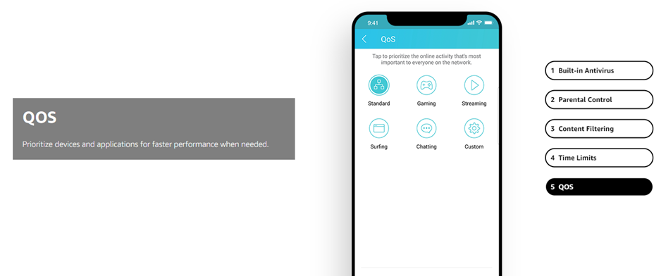 Maximum wireless transmission rates are the physical rates derived from IEEE Standard 802.11 specifications. Range and coverage specifications along with the number of connected devices were defined according to test results under normal usage conditions. Actual wireless transmission rate, wireless coverage, and number of connected devices are not, and will vary as a result of 1) environmental factors, including building materials, physical objects and obstacles, 2) network conditions, including local interference, volume and density of traffic, product location, network complexity, and network overhead and 3) client limitations, including rated performance, location, connection quality, and client condition. MU-MIMO capability requires both the mesh system and client devices to support MU-MIMO. Free lifetime subscription to TP-Link HomeCare is included with purchase on select TP-Link models at no additional cost. “Lifetime Subscription” refers solely to the life of the purchased device and cannot be transferred. TP-Link reserves the right to modify the service and feature at anytime.