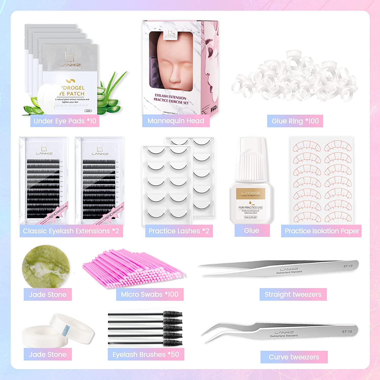 Great Gift: LANKIZ Lash Extension Kit is a great gift for your daughter, cosmetology students, massagist, and woman to practice making up. If any supplies are missing, please contact us directly to get a replacement or refund.