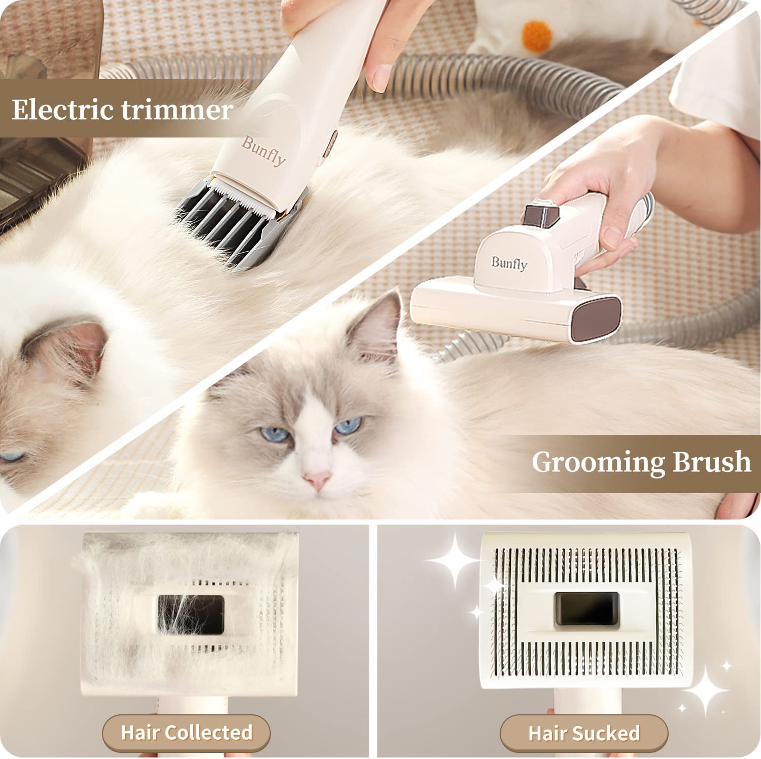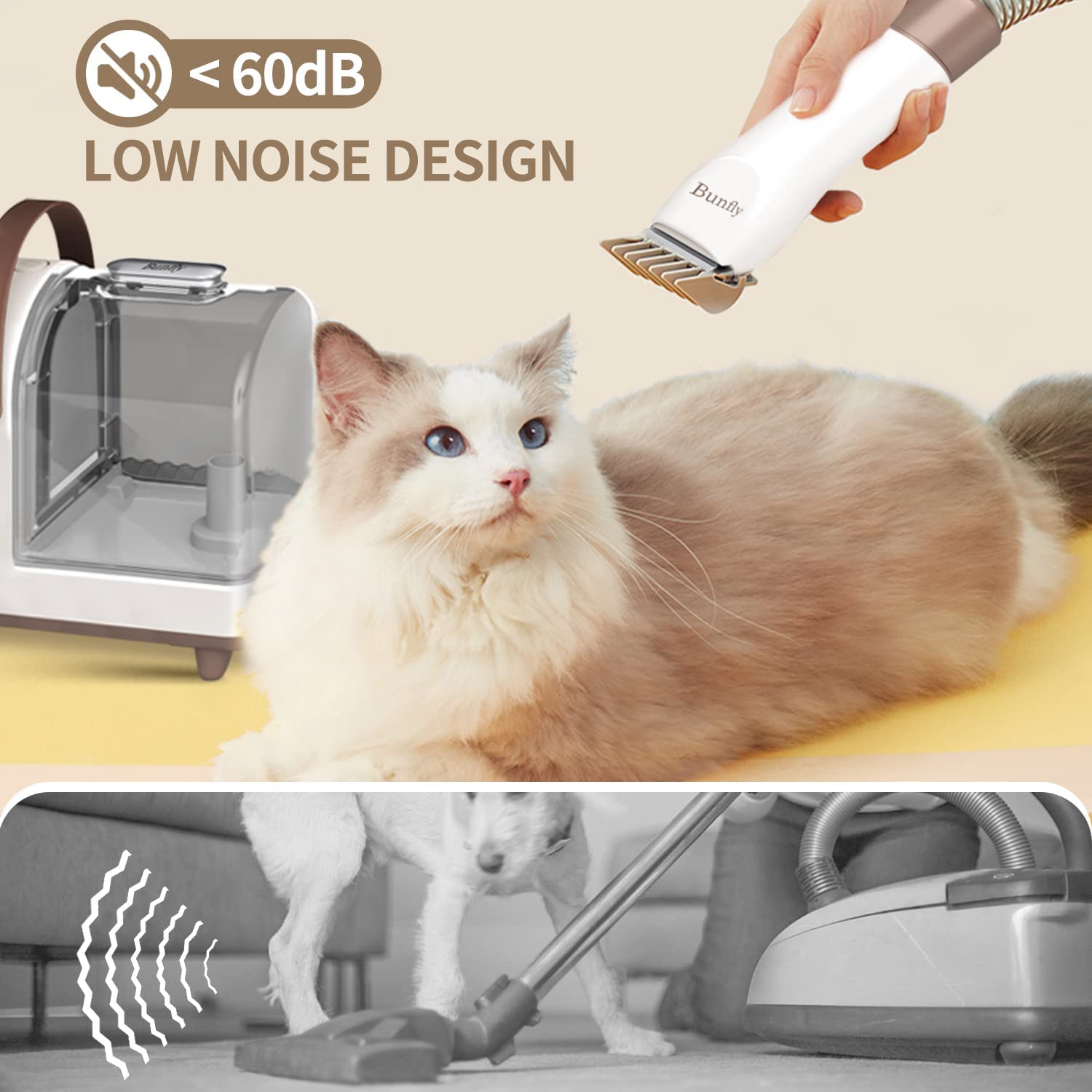 【Low Noise Technology】Bunfly adopts the latest noise reduction technology, the noise is only 65dBA, effectively protecting pets' sensitive hearing. Novice pets can adapt slowly from the first gear.We suggest grooming your pet with our brush before trimming pet hair, treating your pet with little snacks to avoid making your pet nervous because of vacuuming noise, which conclusively makes the grooming experience even more enjoyable.