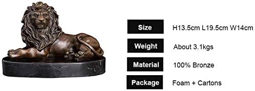 MJWDP Bronze Sculpture Lying Lion Statue Figurine Antique Wildlife Metal Art for Home Decoration