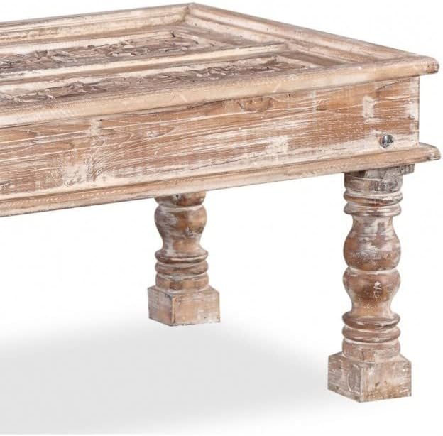 Emboss Antique Brass Work Solid Wood Window Panel Coffee Table Whitewash Coffee Table Indian Wooden Hand Carved Coffee Table Opel Coffee Table