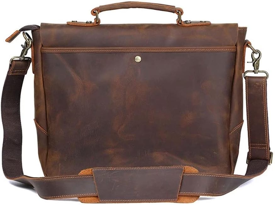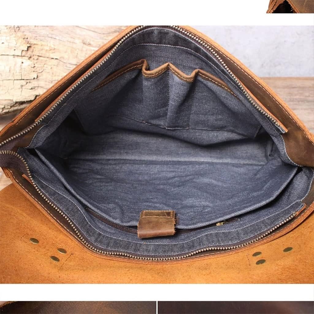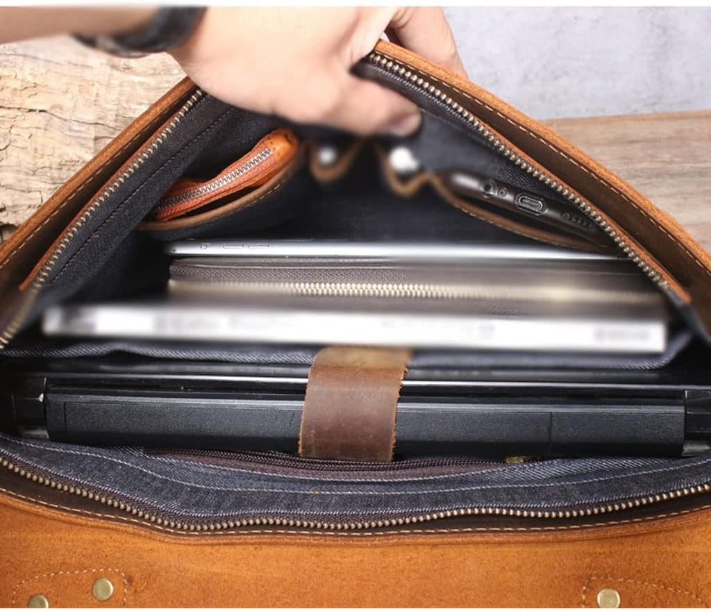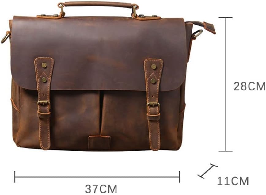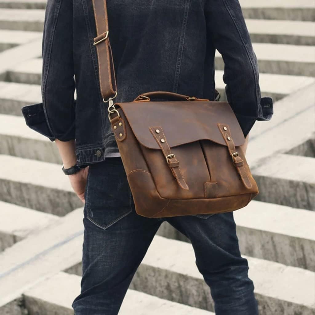 DLOETT Crazy Horse Leather Handbag Men's Travel Messenger Bag Men's Messenger Bag Laptop Bag